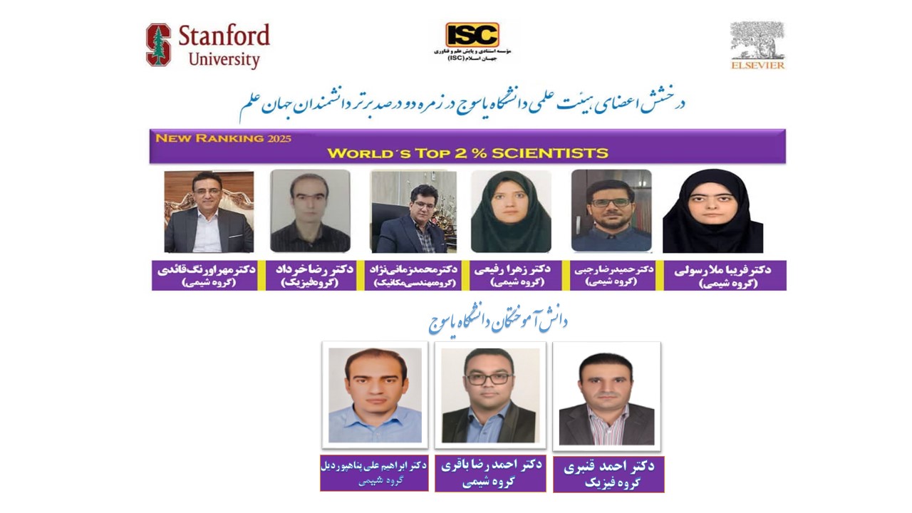 درخشش اعضای هیأت علمی و دانشآموختگان دانشگاه یاسوج در زمره دو درصد دانشمندان برتر جهان علم
